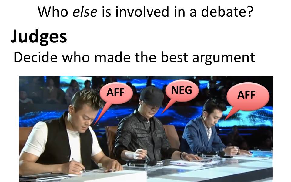 - After students finish their warm-up mini-debates, tell them we are going to talk more about debating today, and show them Slide 7:
