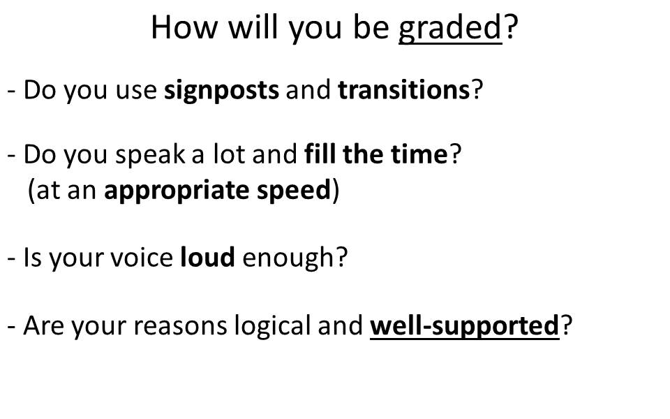 - With Slides 20-23, explain to students how they will be assessed and make it very clear that other students have absolutely no say in their grade.