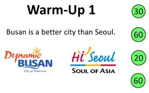 - Repeat the procedure with Warm-Up 2 (Slide 6), but this time B’s must agree and speak first, while A’s must disagree and speak second.