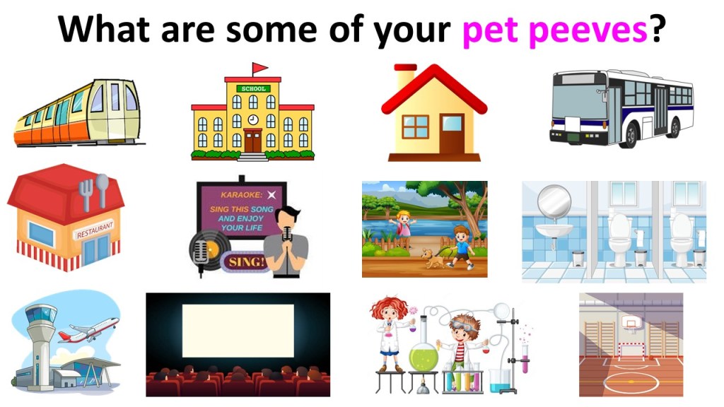 - To spark their memories, show students images of a variety of locations where pet peeves might occur