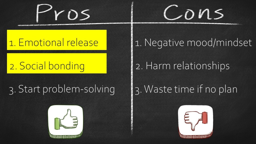 - Tell students that today our intention is focus on the Emotional Release and Social Bonding aspects of complaining.