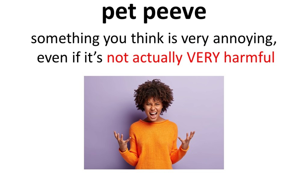 This cathartic ELL lesson will help students let off some steam! They can practice lots of useful vocabulary for expressing complaints and bond with their classmates about the things that really annoy them. This lesson integrates all of the skills of language, both receptive (listening and reading) and productive (speaking and writing). Just in case one of your pet peeves is overly long introductions, I’ll shut up now. Onto the lesson!