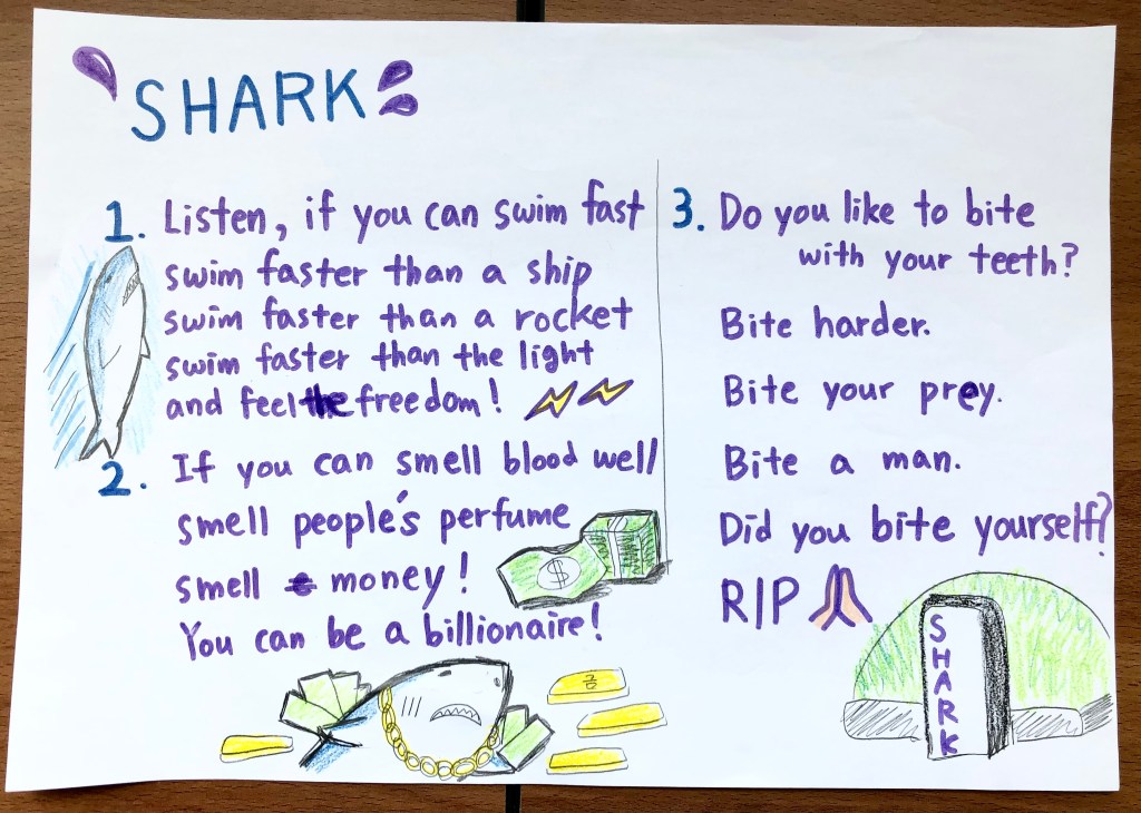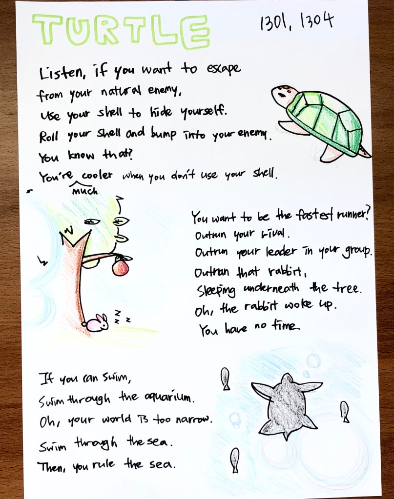 - I intentionally constrain the students’ choices here so they don’t waste a long time trying to find the perfect animal and also to ensure each team gets a different animal.