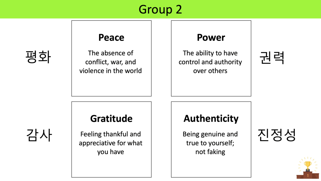 - Fill in the Top Personal Value from each group in the bracket on PPT.