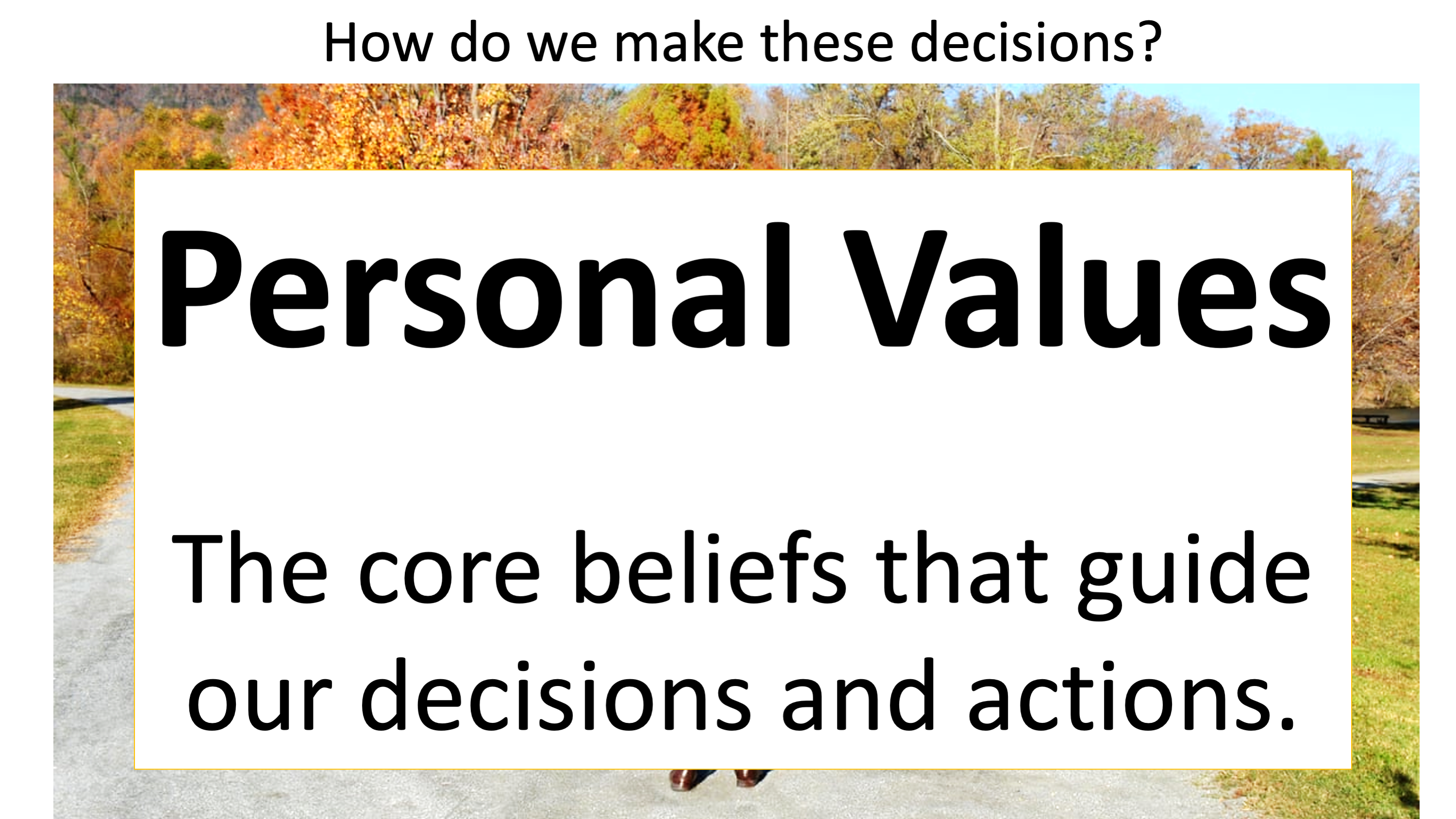 - Transition to “personal values” by telling students, we are using something to make these choices. What we value influences the decisions we make.